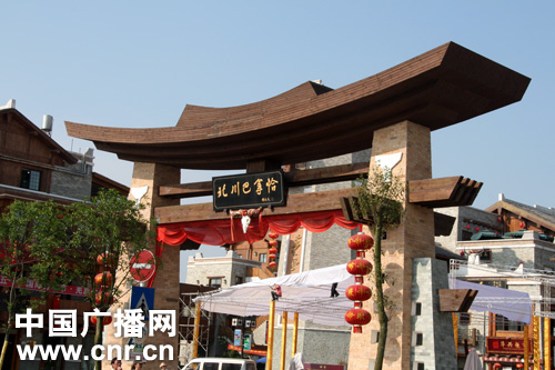 圖為北川巴拿洽商業(yè)步行街充滿羌文化氣息。北川正在推動旅游產(chǎn)業(yè)發(fā)展。中廣網(wǎng)記者李沛 攝