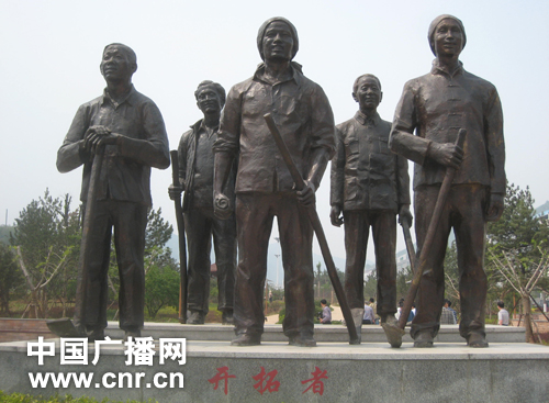 長治平順縣勞模廣場矗立的全國勞動模范開拓者雕像