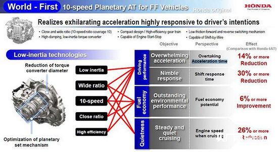 近日,據(jù)海外媒體消息,本田在2015本田科技日上首次發(fā)表了為前驅(qū)開發(fā)的10速自動(dòng)變速箱。該款全新的變速箱具有更加省油、快速以及低油耗的特點(diǎn),換擋反應(yīng)提升了30%。
