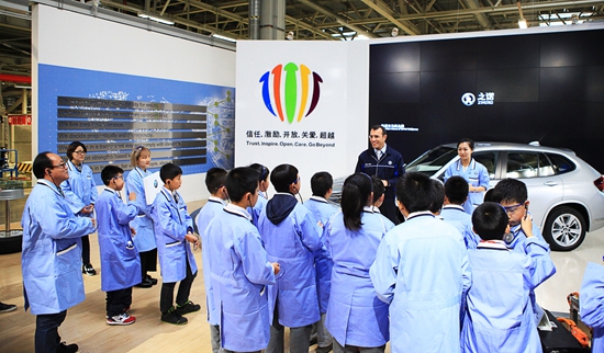 華晨寶馬汽車有限公司鐵西工廠工廠溝通部經(jīng)理左世偉為小朋友授課