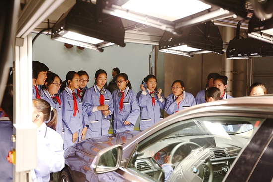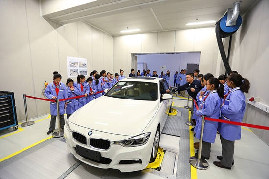 今年,華晨寶馬繼續(xù)完善培訓(xùn)內(nèi)容,拓展項目的受益面,為學(xué)生們設(shè)計了包括汽車知識講堂,工廠參觀,趣味互動在內(nèi)的形式多樣的活動。學(xué)生們探訪了華晨寶馬質(zhì)量實驗室中的聲學(xué)、氣象以及振動實驗室,參觀了全自動化機器人工作時的場景和之諾品牌展示區(qū),對華晨寶馬在環(huán)保、質(zhì)量以及技術(shù)領(lǐng)域的領(lǐng)先技術(shù)有了切身體會。同時,現(xiàn)場還精心安排了汽車模具拼裝互動活動,讓孩子們在建立品質(zhì)觀念的同時,更能將其運用到日常的學(xué)習(xí)和生活中。