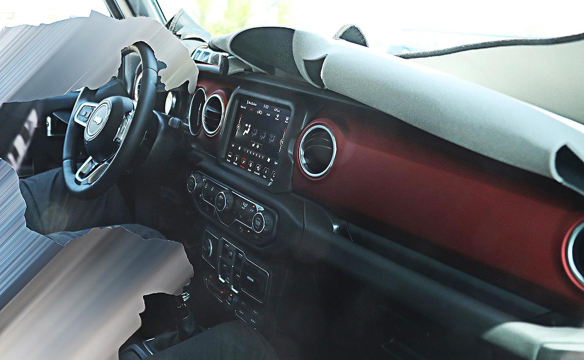 曝光的內(nèi)飾諜照是攝影師從車廂的右側(cè)拍攝的,因此不能清楚地看到該車的儀表盤。不過,中控臺和車載信息娛樂系統(tǒng)卻清晰可見。據(jù)諜照顯示,該車的車窗控制鍵仍在中控臺的中間位置,這表明該車仍保留了車門可拆卸的設(shè)計。該車的儀表組新增7英寸(約18厘米)顯示屏。
