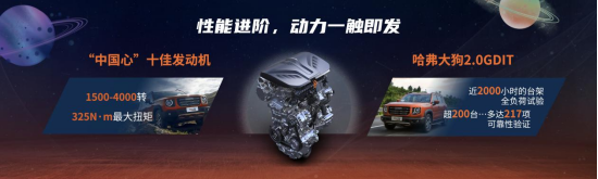 哈弗大狗2.0T四驅(qū)版搭載獲得2020“中國心”十佳的2.0GDIT發(fā)動機(jī),它擁有一系列業(yè)內(nèi)領(lǐng)先優(yōu)勢——高達(dá)38.3%的行業(yè)頂級熱效率,滿足國6b和歐美最嚴(yán)格標(biāo)準(zhǔn)的環(huán)保排放,減重10%的輕量化指標(biāo),以及同級領(lǐng)先的NVH噪音控制能力。該發(fā)動機(jī)還針對哈弗大狗的應(yīng)用場景進(jìn)行了專屬調(diào)教,低速越野工況下,1500~4000轉(zhuǎn)可爆發(fā)出325N·m的強(qiáng)大扭矩,“路遇不平即可輕松脫困,縱橫溝壑也能一馬平川”。而在6000-6300轉(zhuǎn)的高速工況下,車輛可持續(xù)輸出155KW的最大功率,將高效率低排放的優(yōu)勢發(fā)揮至極致,讓用戶每一次低速脫困或是高速超車,都能游刃有余、信心十足。