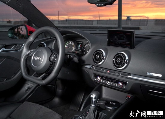 內(nèi)飾方面,奧迪A3中控臺(tái)設(shè)計(jì)的簡潔明了,中控臺(tái)為橫向長條造型,四個(gè)圓形出風(fēng)口很搶眼;黑色內(nèi)飾配合大量銀色裝飾顯得動(dòng)感十足;奧迪的方向盤一向表現(xiàn)不錯(cuò),A3的真皮方向盤大小適中,握感很好;隱藏在方向盤后面的換擋撥片,總算對(duì)得起“豪華”的價(jià)位,撥片手感細(xì)膩,操作后回彈速度也很快。