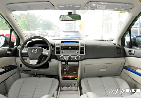 馬自達(dá)8的內(nèi)飾上設(shè)計(jì)延續(xù)了外觀的硬朗風(fēng)格,整體線條布局區(qū)域平直,中控臺(tái)的銀色面板和桃木的搭配帶出幾絲活躍的氣息,搭配米色調(diào)的門(mén)板和座椅,使得馬自達(dá)8的內(nèi)飾風(fēng)格更趨于家用化。