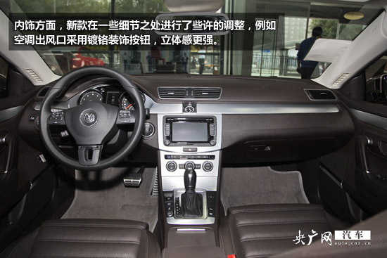 內(nèi)飾方面,新款CC的改動很小,布局與現(xiàn)款車型幾乎完全一致,中控臺上大量使用了鋁合金裝飾條,整體風格仍然與車輛的定位一致,更加符合年輕運動的品味。其上面大多使用軟性材質(zhì),中間的6.5寸多媒體觸摸屏繼承了Media-Box多媒體接口、6碟CD等功能。