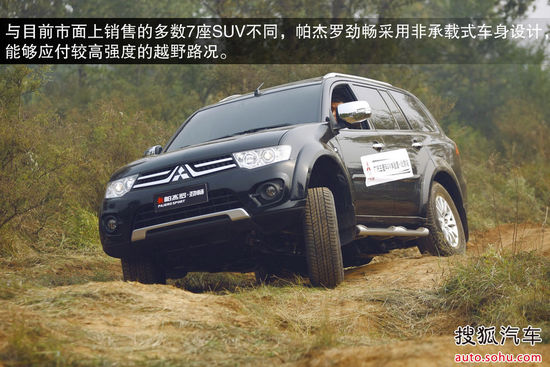 與目前銷售的漢蘭達(dá)等傾向城市實(shí)用的7座SUV不同,帕杰羅勁暢始終保持了能夠應(yīng)付較高越野強(qiáng)度的設(shè)計(jì)。國(guó)產(chǎn)版本仍然使用了非承載式車身,前雙橫臂配后三連桿螺旋彈簧的懸掛組合,車身強(qiáng)度足以應(yīng)付多數(shù)越野路況。