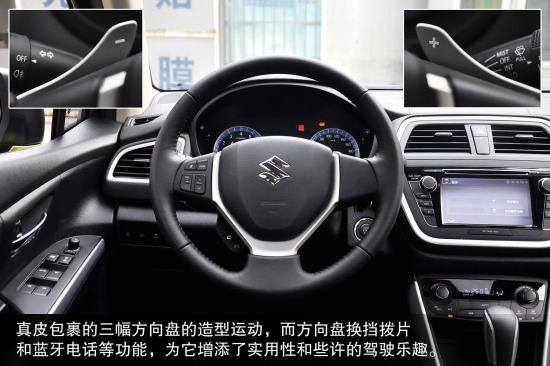 內(nèi)飾部分的設(shè)計(jì)比較簡(jiǎn)單,功能性沒(méi)有問(wèn)題。全黑內(nèi)飾搭配銀色裝飾條是鈴木的標(biāo)準(zhǔn)配置,突出運(yùn)動(dòng)基因。三幅方向盤(pán)集成有多功能鍵和換擋撥片,在同屆別SUV車(chē)型中并不常見(jiàn)。在配置方面,鋒馭全系標(biāo)配一鍵啟動(dòng)和車(chē)身穩(wěn)定控制系統(tǒng),顯得非常厚道,在精英版上還能找到導(dǎo)航、倒車(chē)影像、自動(dòng)空調(diào)等豪華配置,特別是全景天窗,非常有吸引力。