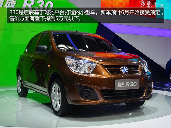 今年2014年的北京車展上,啟辰發(fā)布新款小型車R30,據(jù)了解這款車型的售價(jià)市場(chǎng)終端價(jià)格將進(jìn)入5萬(wàn)元以下的區(qū)間,新車將在兩個(gè)月內(nèi)啟動(dòng)預(yù)售,并于9月正式上市銷售。而啟辰之前多次亮相的晨風(fēng)純電動(dòng)車也將于9月上市。此外現(xiàn)有車型啟辰D50、R50也會(huì)在4月底推出精彩版車型。
