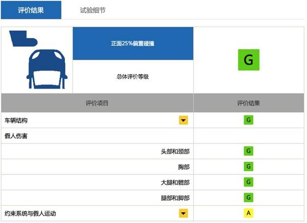 車外行人安全——整體指數(shù)成績?yōu)镚(優(yōu)秀)。行人保護得分率高達66%,腿型試驗得分更是取得了滿分6分的好成績。