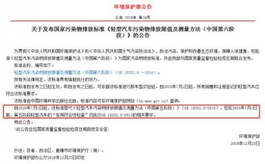 2016年底,環(huán)境保護部(現并入生態(tài)環(huán)境部)發(fā)布了《輕型汽車污染物排放限值及測量方法(中國第六階段)》,要求輕型車于2020年7月1日,強制執(zhí)行國六a排放標準,并在2023年7月1日強制執(zhí)行國六b排放標準。此外,在堅決“打贏藍天保衛(wèi)戰(zhàn)”的指引下,多個省、市已提前開啟“國六時代”。
