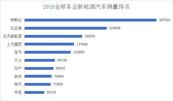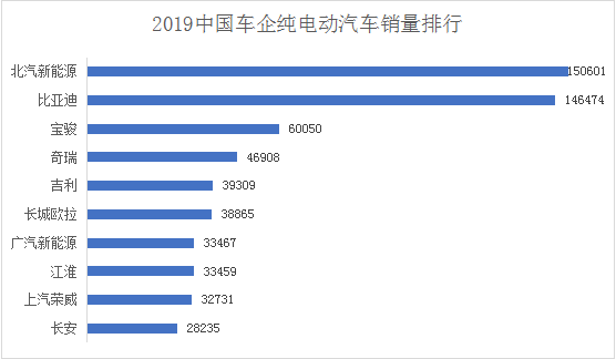 從車企銷量排行看,2019年特斯拉首次超越比亞迪成為全球新能源汽車銷量冠軍,北汽新能源穩(wěn)居前三甲,上汽與吉利也依然名列TOP10。而在純電動汽車領(lǐng)域,北汽新能源仍然保持著全球銷量第二的市場地位。