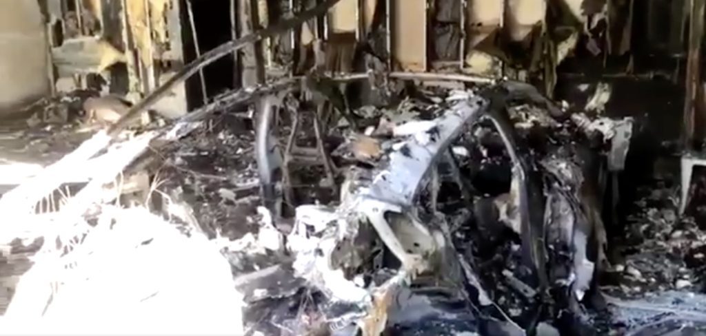 目前,外界尚不清楚更多細(xì)節(jié),但據(jù)發(fā)布在社交媒體上的圖片顯示,電動(dòng)車損毀嚴(yán)重,被燒到只剩下部分車架,并且車庫(kù)也遭到了嚴(yán)重?fù)p壞。有當(dāng)?shù)鼐用衽臄z了大火被撲滅之后的現(xiàn)場(chǎng)視頻。他們聲稱,車輛在車庫(kù)里面發(fā)生了“爆炸”。