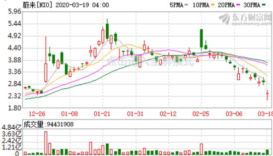 蔚來汽車(NIO)近日公布了其2019年財(cái)報(bào)并舉行電話會議,公司在資產(chǎn)負(fù)債表部分聲明:截至2019年12月31日,公司的現(xiàn)金及現(xiàn)金等價物、受限制現(xiàn)金和短期投資為人民幣10.56億元,不足以為未來12個月的持續(xù)運(yùn)營提供所需的營運(yùn)資金和流動資金。受此消息影響,18日蔚來汽車股價大跌16.21%,以2.4美元價格低開并保持橫盤震動,截至收盤,蔚來汽車總市值為25.58億美元,當(dāng)天換手率高達(dá)8.97%。