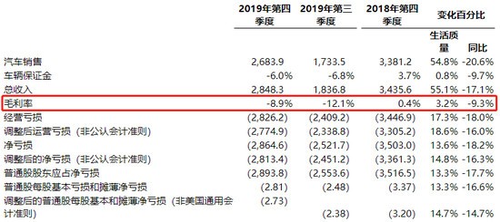 2019年第四季度蔚來汽車毛利率為-8.9%,環(huán)比收窄3.2個百分點(diǎn),趨勢向好,然而四季度調(diào)整后經(jīng)營虧損卻高達(dá)人民幣27.75億元,環(huán)比擴(kuò)大18.65%,對此,魏鋒強(qiáng)調(diào):“為優(yōu)化組織結(jié)構(gòu)和經(jīng)營效率,蔚來在去年四季度有過一筆調(diào)整性費(fèi)用支出,這將有效減少運(yùn)營費(fèi)用,并改善未來現(xiàn)金流,從而提高運(yùn)營效率和利潤率!