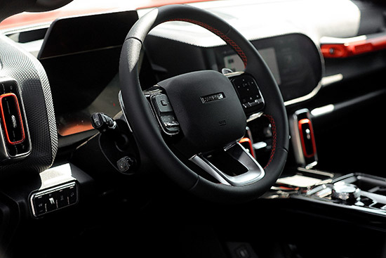 除了外部設計,大狗的內飾設計靈感也源于大自然,矩陣式出風口形似“巨石陣”,換擋旋鈕酷似“木星星環(huán)”,嵌入式中央大屏如“湖面”一樣與操作臺融為一體,在靈動與粗獷想融的線條之下,是大狗基于智能網聯(lián)系統(tǒng)的人性化設計,讓你在看世界的每一個時刻,都感受到科技帶來的改變。