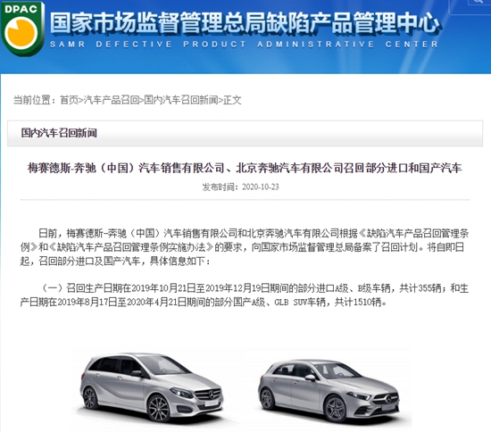 10月23日,奔馳宣布自即日起,召回共計(jì)2782輛國(guó)產(chǎn)和進(jìn)口汽車。
