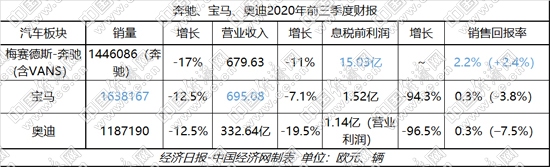 在此帶動下,BBA汽車業(yè)務(wù)一改二季度的虧損、下滑,三季度各主要財務(wù)指標均呈現(xiàn)明顯回升,息稅前利潤及銷售回報率等更是實現(xiàn)由虧損轉(zhuǎn)向盈利,寶馬、奧迪在銷量上也分別達到8.6%和6.4%的同比正增長。BBA前三季度各指標,也因此實現(xiàn)了一定程度的提升。