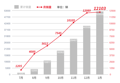 (比亞迪漢車型2020年7月-2021年1月銷量數(shù)據(jù))