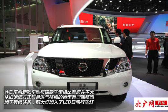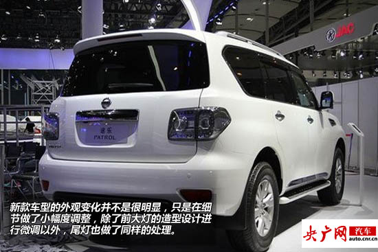 2014款日產(chǎn)Patrol途樂(lè)在此次廣州車(chē)展上正式上市,起價(jià)為119.8萬(wàn)元。作為旗艦全尺寸SUV,此次上市的第六代途樂(lè)依舊延續(xù)了其上幾代車(chē)型的寬大敦厚的特點(diǎn)。在外形方面,新款車(chē)型并沒(méi)有太大的變化,只是在細(xì)節(jié)處進(jìn)行了微調(diào)。