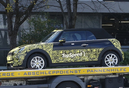 新一代迷你Cooper敞篷車將于11月18日亮相東京車展和洛杉磯車展,近日,外媒曝光了一組新款迷你Cooper敞篷車的諜照。