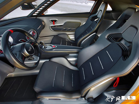 內(nèi)飾方面,起亞GT4 Stinger造型簡約,采用2+2的座椅布局,并采用賽車式座椅和方向盤,值得一提的是新車的A柱采用鏤空的樣式,美觀的同時也能更有效的避免A柱阻礙視線造成的盲區(qū),減少安全隱患。