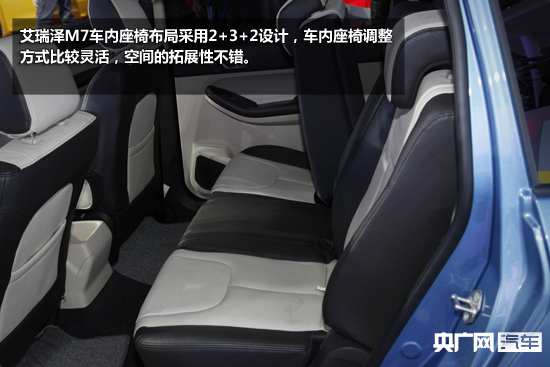 艾瑞澤M7采用了雙色打孔皮質(zhì)座椅,質(zhì)感不錯;中排座椅支持前后滑動及靠背角度調(diào)節(jié),角度最大可達135度,很人性化,第三排沒有乘客的情況下中排乘客可以享受超大空間。 艾瑞澤M7車內(nèi)座椅布局采用2+3+2設計,行李箱容積為588升,第二排和第三排座椅放倒后,能擴展到2240升,不僅能夠滿足日常出行,裝點貨物也完全沒問題。