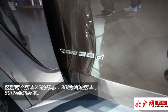 寶馬在此次廣州車展上發(fā)布了其新款寶馬X5,新款車型分為30i汽油版本以及50i柴油版本。兩個版本的車型從外觀到內(nèi)飾并無太大區(qū)別。