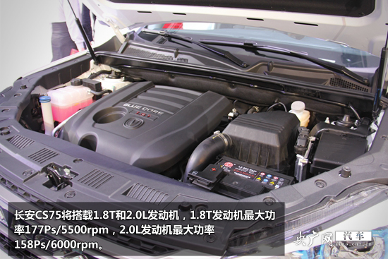 在本次北京車展上市的CS75是長安汽車開發(fā)的首款中型SUV,長寬高分別為4648毫米、1849毫米和1694毫米,軸距為2700毫米。其突出“都市越野”個性,內(nèi)飾較現(xiàn)款車型有較大進(jìn)步,并采用鍍鉻裝飾條,中控臺區(qū)域使用雙飛翼式的設(shè)計。動力方面配備了1.8L渦輪增壓發(fā)動機(jī)并配有6速自動變速器。同時,其還將沿用睿騁身上使用的2.0L自然吸氣發(fā)動機(jī),以及匹配6速手動變速器等。此外,CS75還配備無鑰匙進(jìn)入和一鍵啟動以及定速巡航功能等。