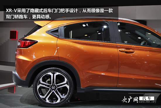 XR-V采用了隱藏式后車門門把手設(shè)計(jì),從而很像是一款雙門轎跑車,更具動感。據(jù)悉,新車的軸距則控制在2550mm左右。XR-V定位于合資小型SUV,競爭對手如東風(fēng)標(biāo)致2008、福特翼搏、別克昂科拉等。