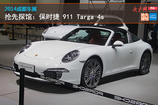 2014成都車展即將于8月29日開幕,央廣汽車前方報道團隊在9號館內(nèi)拍攝到了保時捷911 targa 4S車型。靚麗的外觀讓人一眼便能識別出這輛車,該車的很多設計有向第一代Targa致敬的意思。
