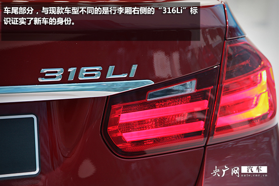 外觀方面,華晨寶馬316Li與現(xiàn)款國(guó)產(chǎn)3系Li車型基本保持一致,軸距依然為2920mm,與剛剛上市的全新奔馳C級(jí)轎車持平。新車依舊是標(biāo)志性的雙腎型進(jìn)氣格柵搭配開(kāi)眼角式前燈組,其中前大燈組也采用了透鏡大燈設(shè)計(jì)。前保險(xiǎn)杠的造型非常運(yùn)動(dòng),運(yùn)用鍍鉻飾條將車頭造型打造的更加亮眼。車尾部分,與現(xiàn)款車型不同的是行李廂右側(cè)的“316Li”標(biāo)識(shí)證實(shí)了新車的身份。新車型依然采用單邊單出的排氣設(shè)計(jì)。