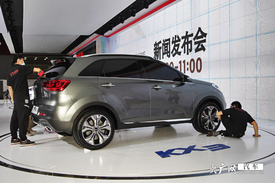 2014廣州車展即將于11月19日開幕,央廣汽車前方報(bào)道團(tuán)隊(duì)在1.1館內(nèi)拍攝到了東風(fēng)悅達(dá)起亞的概念SUV車型KX3,這款小型SUV目前還屬于概念階段,外觀造型比較前衛(wèi),量產(chǎn)后應(yīng)該會做出相應(yīng)的調(diào)整。