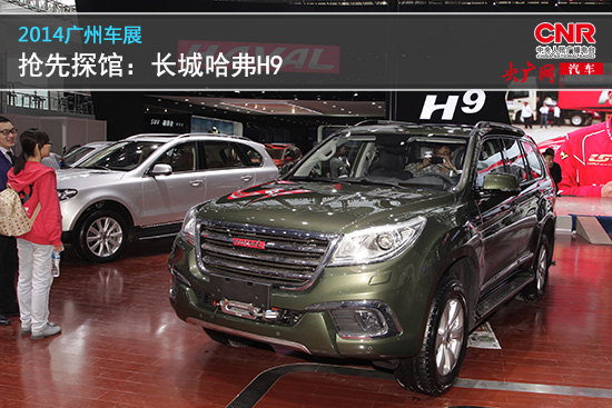 2014廣州車展即將于11月20日開幕,央廣汽車前方報道團隊在5.2號館內拍攝到了長城哈弗H9。作為哈弗的旗艦SUV,哈弗H9定位于中大型全路況SUV,與主打公路性能的哈弗H8形成互補。