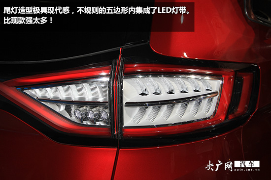 尾部造型方面,國產(chǎn)福特銳界相比老款的C柱造型更加挺拔,尾燈造型極具現(xiàn)代感,不規(guī)則的五邊形內(nèi)集成了LED燈帶。排氣則采用雙邊共雙出的設(shè)計。