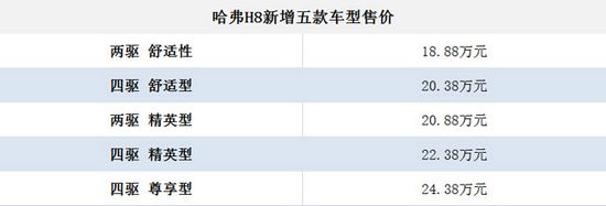 哈弗H8新增五款車型