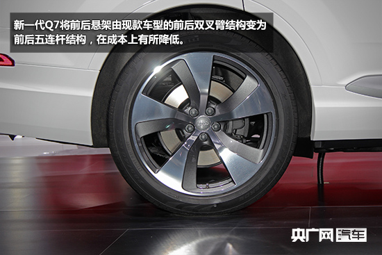 新一代Q7將前后懸架由現(xiàn)款車(chē)型的前后雙叉臂結(jié)構(gòu)變?yōu)榍昂笪暹B桿結(jié)構(gòu),在成本上有所降低,但是新一代奧迪Q7配備了自適應(yīng)懸架系統(tǒng),可根據(jù)車(chē)輛行駛狀態(tài)的不同調(diào)整車(chē)身高度。