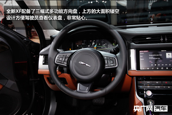 內(nèi)飾方面,全新XF的內(nèi)飾設(shè)計(jì)更顯運(yùn)動,車內(nèi)采用了大面積的真皮和木質(zhì)裝飾,復(fù)古英倫氣息濃厚。新車配備了三幅式多功能方向盤,上方的大面積鏤空設(shè)計(jì)方便駕駛員查看儀表盤,非常貼心。車內(nèi)配備了12.3英寸全液晶儀表板,顯示效果非常清晰,更具科技感。中控臺中央是10.2英寸多功能液晶儀表盤,而且支持雙屏顯示,搭載了捷豹最新的InControl Touch Pro,倒車?yán)走_(dá)、手機(jī)交互、GPS導(dǎo)航、多媒體控制等都能在大屏幕上實(shí)現(xiàn)。