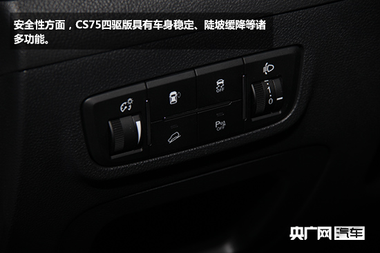 CS75四驅(qū)版是長安旗下目前在售的最高檔次的SUV車型。配置方面,CS75搭載全新in Call 3.0智能車載互聯(lián)系統(tǒng),具備語音控制等功能。而安全性方面,CS75四驅(qū)版具有車身穩(wěn)定、陡坡緩降等諸多功能。