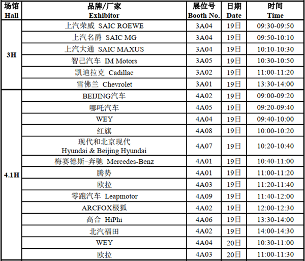 4月19日至4月20日,各大車企及相關(guān)參展企業(yè)將在各自展臺或會議廳舉行138場新聞發(fā)布會,共同拉開2021上海車展帷幕。兩天媒體日新聞發(fā)布會時間表日程公布如下: