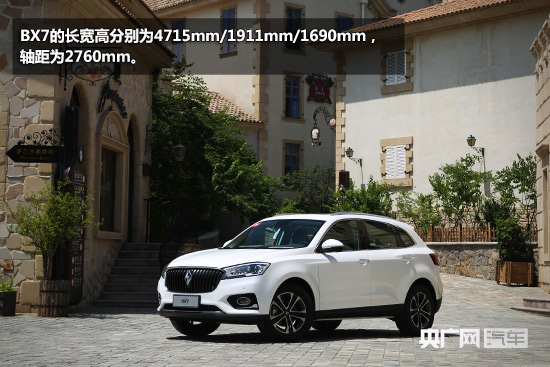 寶沃BX7定位于中型SUV,車身尺寸較同價(jià)位的途觀、CR-V等緊湊級(jí)SUV大出不少,長(zhǎng)寬高分別為4715mm/1911mm/1690mm,軸距為2760mm,超過(guò)一米九的車寬印證了其“智聯(lián)寬體SUV”的定位。