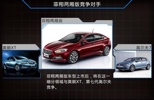 廣汽菲亞特旗下首款車型——菲翔上市至今已有一年左右的時間,在取得不錯銷量的同時其還在規(guī)劃兩廂版車型的推出。廣汽菲亞特執(zhí)行副總經(jīng)理蔣平曾在接受采訪時表示:“2013年第四季度菲翔的兩廂版車型將正式上市!蔽磥磉@款全新兩廂緊湊級轎車將面臨多款車型的競爭,包括大眾高爾夫等。