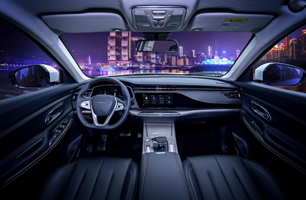 內(nèi)飾設(shè)計遵循“新奢主義美學(xué)”設(shè)計理念,360°全方位軟包設(shè)計帶來高質(zhì)感感官體驗,中控10.25英寸全液晶儀表大屏采用懸浮式曲面屏設(shè)計概念,彰顯科技與時尚的風(fēng)范,航空級別合金拉絲操控臺板帶來高級質(zhì)感范兒,營造出高質(zhì)感感官體驗。