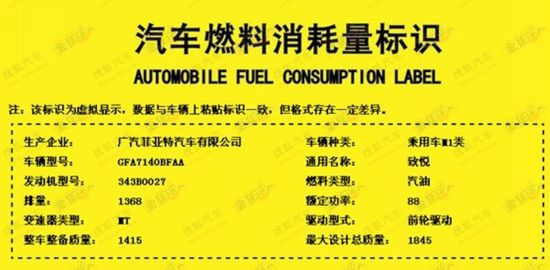 致悅/奇瑞E2等 11月汽車燃料消耗量標(biāo)識(shí)