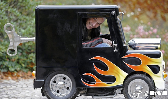 英國設(shè)計(jì)師佩里·沃特金斯組裝出世界上體積最小的汽車并獲得牌照,汽車最高時速可達(dá)60公里。他組裝的發(fā)條迷你汽車高41英寸(約合1.04米),長51英寸(約合1.29米),寬26英寸(約合66.04厘米)。
