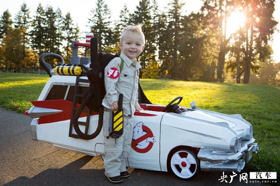 手推車經(jīng)過(guò)改裝變成《捉鬼特工隊(duì)—Ecto-1行動(dòng)》里的炫酷戰(zhàn)車。Cooper的父母Corry和Jeremy其實(shí)也是在完成自己兒時(shí)的夢(mèng)想。他們努力回想80年代當(dāng)自己還是孩子的時(shí)候想得到的東西,將他們送回自己的孩子,于是就有了這部源自經(jīng)典電影的Ecto—小汽車。
