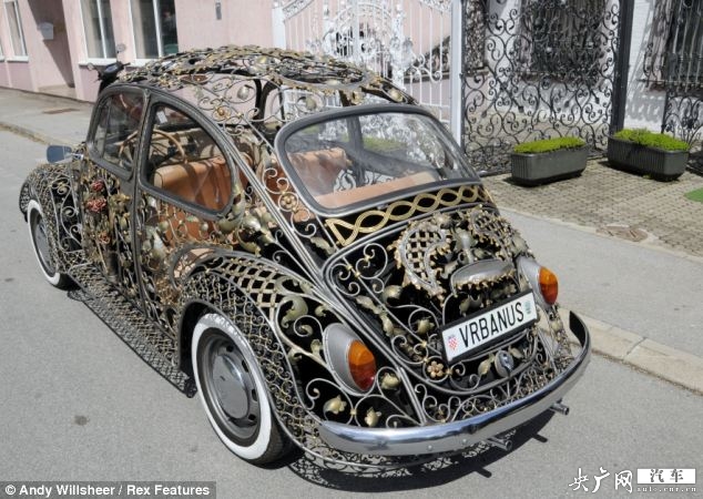 克羅地亞一家鐵藝門制造商近日打造出一輛獨(dú)一無二的甲殼蟲經(jīng)典車型。該車回歸古典風(fēng)格,整個(gè)車身由獨(dú)特設(shè)計(jì)的熟鐵打造而成,外表雕刻成精美的鏤空花樣。該車的設(shè)計(jì)用時(shí)4個(gè)月,由3個(gè)工匠花費(fèi)3000個(gè)工時(shí)手工打造,包括外觀24克拉金葉的設(shè)計(jì)和手工縫制的皮制內(nèi)飾。車內(nèi)的每個(gè)組成部分都是定做的。