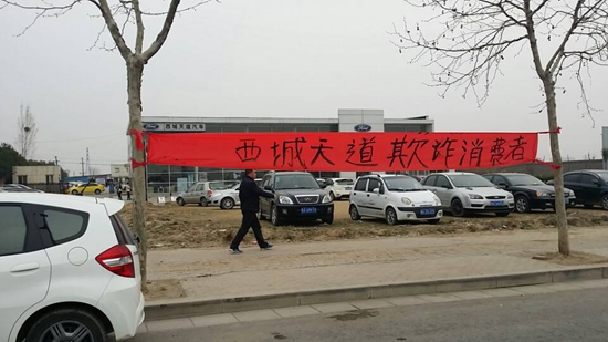 在多次撥打廠商電話未果后,韓先生和幾個(gè)朋友在4S店門口拉起了橫幅進(jìn)行抗議,4S店人員與韓先生發(fā)生了爭(zhēng)執(zhí),將橫幅扯下,并提出要低價(jià)收購(gòu)韓先生的車,韓先生拒絕了4S店的要求,目前事態(tài)還在僵持狀態(tài)中。