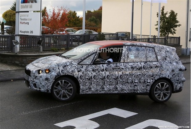 近日,海外媒體曝光了一組寶馬2系A(chǔ)ctive Tourer七座版本的諜照,新車或?qū)⒚麨?系Gran Tourer。預(yù)計(jì)將年底正式發(fā)布。
