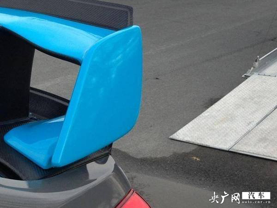 從圖片上看,新車型采用了大尺寸的藍色擾流板,并采用碳纖維材料打造。從空氣動力學角度看,該車更像是賽車版,而非公路版。